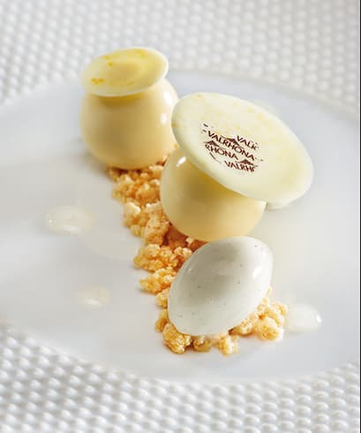 Zum Schluss den Teller mit ein paar Tropfen Eisglasur beträufeln und ein Sorbetklößchen dazugarnieren.Tipps und Tricks Restaurant