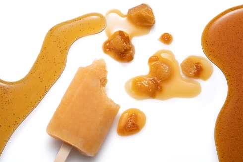 Después de haber puesto el granizado Oabika 10 minutos en el congelador, añadir el relleno de piña asada con Oabika y verter otra vez granizado Oabika, a continuación poner el interior tatin piña Oabika congelado y terminar vertiendo una última vez el granizado Oabika.