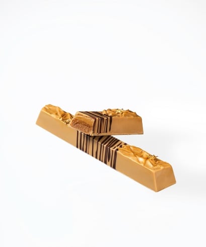 Rellenamos la mitad del molde con la ganache de crema de orujo Dulcey. A continuación acabamos de rellenar con el crujiente de praliné de avellana y por ultimo cerramos el molde con la cobertura Dulcey.