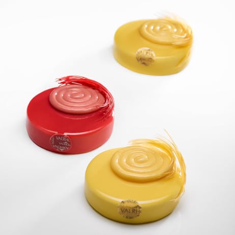 Inspiration Pasión es una cobertura de frutas: el maridaje complejo de la manteca de cacao, del azúcar y de la fruta de la pasión. Dulce, golosa con un toque acidulado, la fruta de la pasión evoca el sol de los países tropicales de donde procede. Su sabor a la vez único y sutil ilumina los postres de verano. Aunque tenga un sabor peculiar y sea difícil de trabajar, Valrhona ha querido poner esta fruta al alcance de todos creando la cobertura de fruta Inspiration Pasión.
