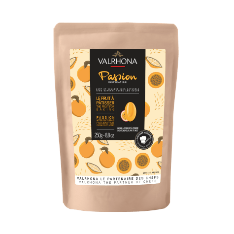 Inspiration Passion propose un goût et une couleur naturels, des notes intenses et gourmandes de fruit de la passion acidulé, alliés à la texture unique du chocolat.