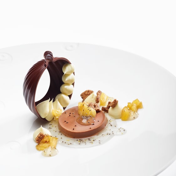 Kalingo, pure origine Grenade*, un Grand Cru Valrhona au chocolat noir équilibré avec des notes de fruits mûrs alliant la douceur de la gousse de vanille, dont les *fèves de cacao proviennent de l'île de Grenade (Grenade)