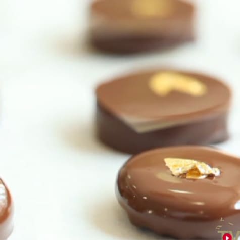 Avant de fermer les coques, laisser cristalliser la ganache au moins 24 heures afin qu’elle ne bouge pas à l’intérieur des bonbons. Décristalliser très légèrement les coques à l’aide d’un chalumeau. Conseil : puisque vous avez créé une joli rebord pour coller les coques, il est très important de les décristalliser très légèrement afin que les deux rebords prennent bien et que l’extérieur de la coque soit bien lisse. Verser une belle couche de chocolat tempéré au centre du moule (comme lors du moulage, au début de la recette). Racler le moule. Le tapoter pour éliminer toute bulle d’air sur les côtés. Laisser cristalliser le chocolat pendant 24 heures, dans l’idéal dans une pièce à 16-17 °C avec 60 % d’humidité.