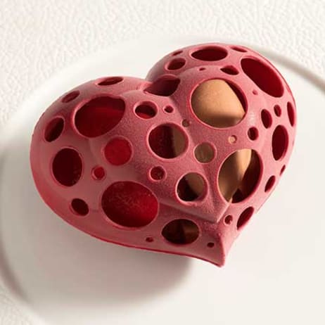 Saupoudrer de la poudre de vanille sur une feuille guitare. Couler du chocolat Opalys tempéré par-dessus et déposer aussitôt une deuxième feuille guitare. Etaler ensuite l’ensemble à l’aide d’un rouleau à pâtisserie. Avant complète cristallisation, détailler trois disques de tailles différentes à l’aide d’emportes pièces. Laisser cristalliser. Foisonner la ganache Opalys/Vanille afin d’obtenir une texture assez souple. A l’aide d’une poche munie d’une douille unie de 11 cm, dresser des boules de ganache sur les disques chocolat puis les recouvrir d’un autre disque chocolat (sur le dessus). Réserver au réfrigérateur. Egoutter les cubes de poires sur un papier absorbant. A l’aide d’un pinceau, faire un trait de ganache non foisonné au fond d’une assiette puis déposer au centre 15 g de confit de poire. Recouvrir le confit de poire d’environ 20 g de streuzel. Finir le dessert en disposant harmonieusement quelques cubes de poires et les disques de chocolat garnis de ganache montée Opalys / Vanille. Servir aussitôt.