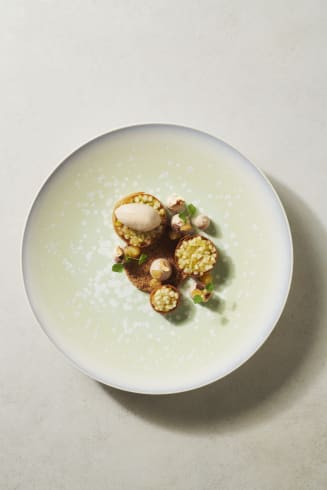 Venir déposer quelques cubes d’Azélia, des éclats de noisettes torréfiées et des jeunes pousses d’Atsina Cress.