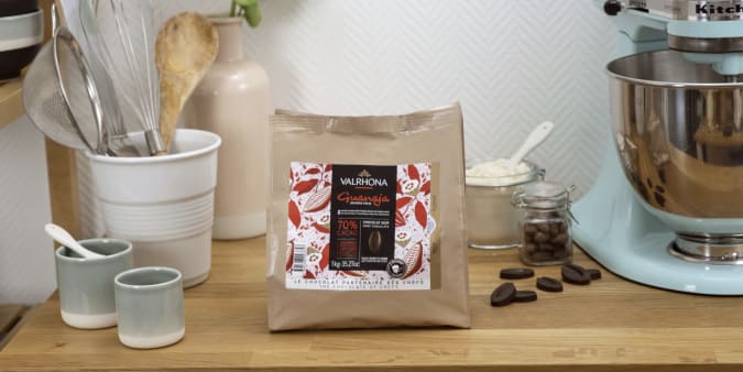 Kalingo, Single Origin Grenada*, a balanced Valrhona dark chocolate Grand Cru combining ripe fruit notes with the sweetness of vanilla beans, with *cocoa beans from the island of Grenada (Grenada)